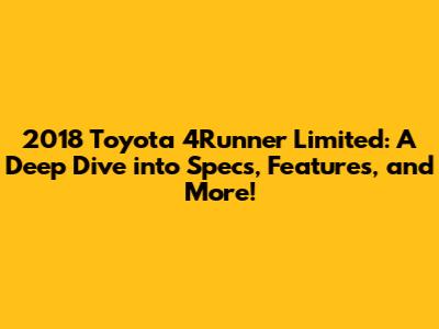 Hey guys! So, you're curious about the 2018 Toyota 4Runner Limited? Awesome choice! This SUV is a beast, known for its rugged reliability, spacious interior, and off-road capabilities. But what exactly makes the Limited trim so special? Let's dive deep into the specs, features, and everything else you need to know about this fantastic vehicle. We'll explore what made the 2018 model a standout and why it remains a popular choice for adventurers and families alike. Buckle up, because we're about to embark on a detailed exploration of the 2018 Toyota 4Runner Limited specs!