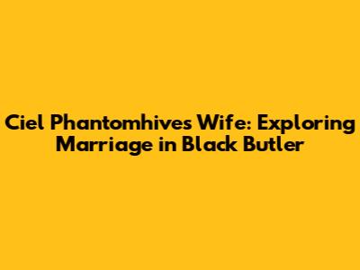 Ciel Phantomhive's Wife: Exploring Marriage In Black Butler