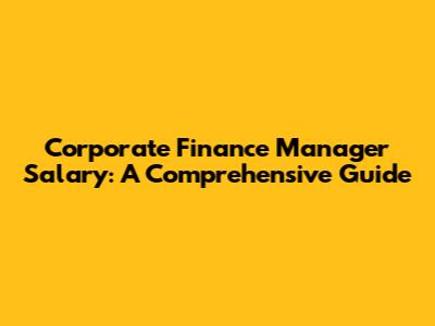Corporate Finance Manager Salary: What You Need To Know