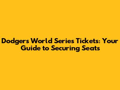 Dodgers World Series Tickets: Your Guide To Securing Seats
