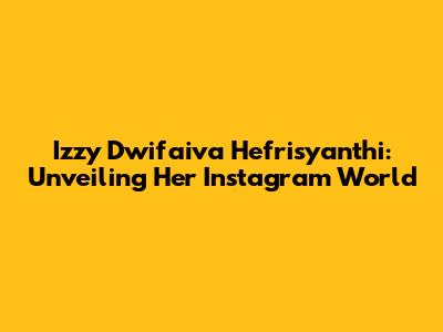 Hey everyone! Today, we're diving deep into the digital life of Izzy Dwifaiva Hefrisyanthi and exploring her Instagram presence. For those of you who might be wondering, who is Izzy Dwifaiva Hefrisyanthi? Well, she's an Indonesian personality who has captured the attention of many online. Instagram has become a primary platform for connecting with her audience. Her account provides a window into her daily life, interests, and professional endeavors. Let's delve into what makes her Instagram so engaging and what we can learn from her approach.