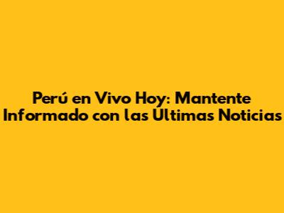 Perú En Vivo Hoy: Las Últimas Noticias Y Cobertura